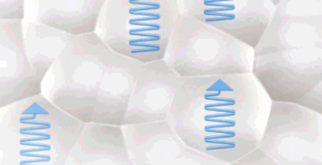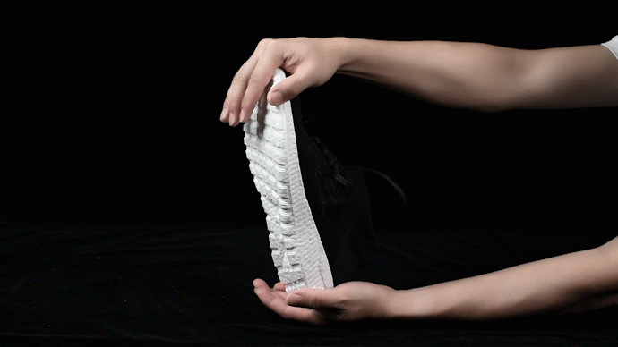 衝撃を吸収した後は反発力により元の形に戻ることで、ポップコーンのようにはじけるような弾力性により、アクティブな動きを補助します。そのため、雲の上を歩いているような軽やかな歩行を続けられます。