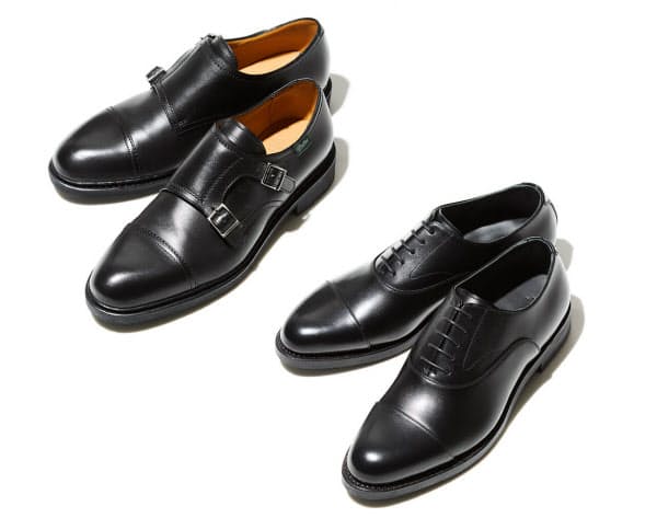 「定番のウィリアムに変わるダブルモンクとして登場した「POE」。低く抑えられた甲のライン、やや長めにとられたトウがドレススタイルの足元に最適だ。土踏まずが薄い形状になっていて返りがとても良く、グリップ力に優れた実用性のギャラクシーソールを採用。ノルウィージャン製法は防水性も高く、急な天気の変化にも対応でき、雨の日用のドレスシューズとしてもおすすめ。長時間歩いても疲れにくい履き心地で多忙なビジネスマンの足元を快適にサポートしてくれる。7万1500円/パラブーツ(パラブーツ青山店)