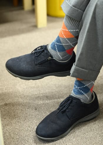 ――石津さんはアーガイル柄の靴下をよく履かれています。アーガイルはひし形が連なり、そこに線が交差した格子柄。ビジネスにもOKですか。