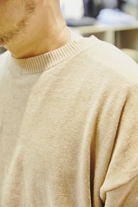 カットソーの生地には光沢感を加えるシルケット加工を施してある。シルクのような上品な質感が魅力だ
