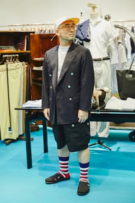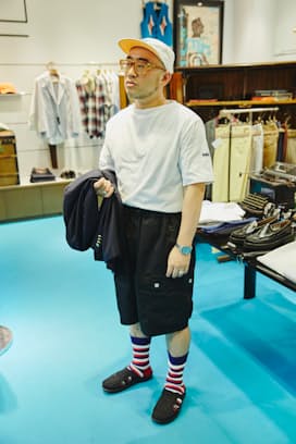 ジャケット 4万6200円(エディフィス)、トップス 8030円(セントジェームス)、パンツ 1万2100円(アーミーツイル)、ソックス4180円(コーギー)、キャップ(私物)