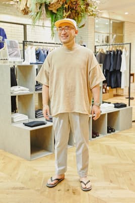 カットソー 8800円(ネストウェル)、パンツ 2万2550円(アボンシェル)、キャップ(私物)