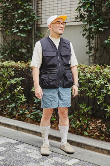 ベスト1万9800円(カーハートWIP)、カットソー 9350円(ETS.マテリオ)、パンツ 7920円(パタゴニア)、ソックス 1980円(ナイキ)、キャップ(私物)