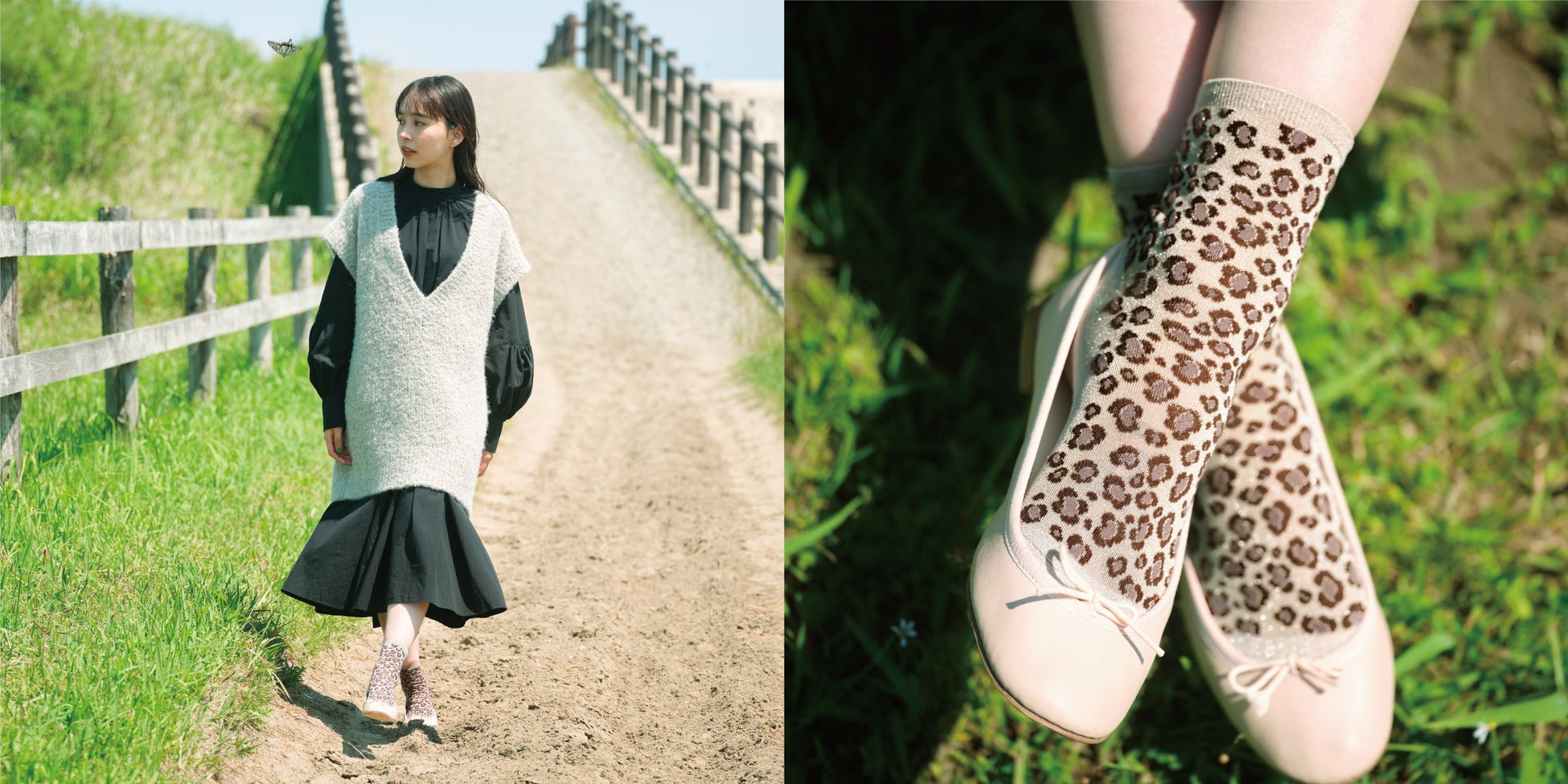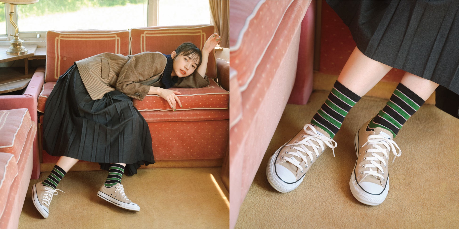 イメージモデルには、女優やモデル、バラエティ番組や情報番組でもマルチに活躍する、井桁弘恵(いげた・ひろえ)さんを起用。自然と靴下がマッチしたレトロな世界観漂う印象的なビジュアルに仕上がりました。