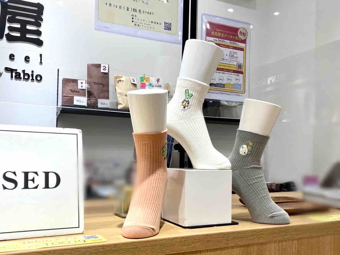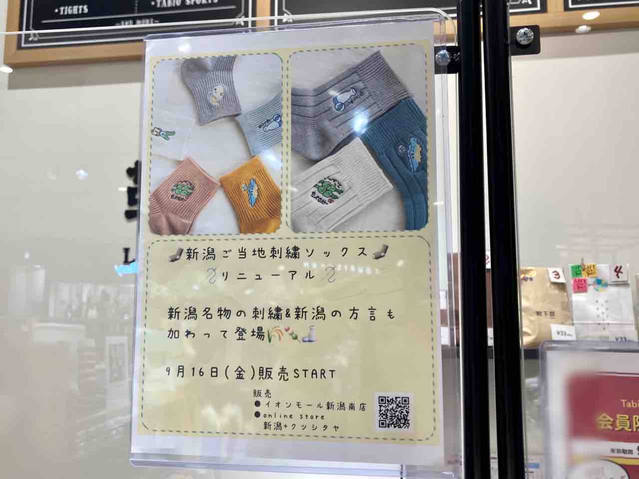 亀田のイオン限定!方言入りの新潟ご当地靴下5種類!『イオンモール新潟南』内にある『靴下屋 イオンモール新潟南店』で『新潟ご当地刺繍ソックス』発売!9月16日~。 - 株式会社ユニークワン