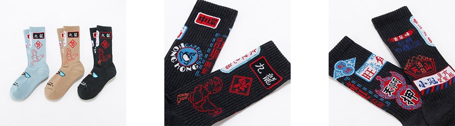 きらびやかに輝くネオンの看板が懐かしい街並み、路地裏のいたるところで売られているのを見かけた麻雀牌、漢字とはまた異なる香港数字、縁起の良い金魚、点心が食べたくなるような茶器を思わせる刺繍デザイン、熱気を帯びた香港のイメージを詰め込んだラインナップです。