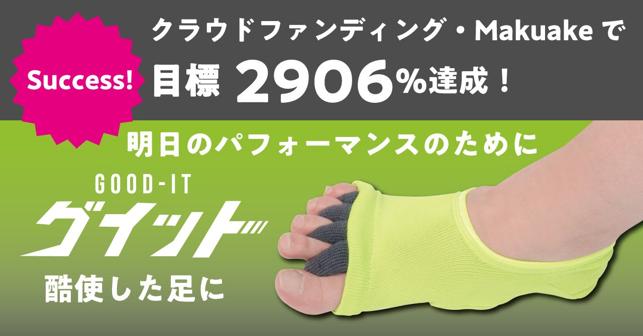 クラウドファンディング・Makuakeで目標を2906%を達成!酷使した足をケアする『グイット(good-it)』の一般販売を開始いたしました - PR TIMES