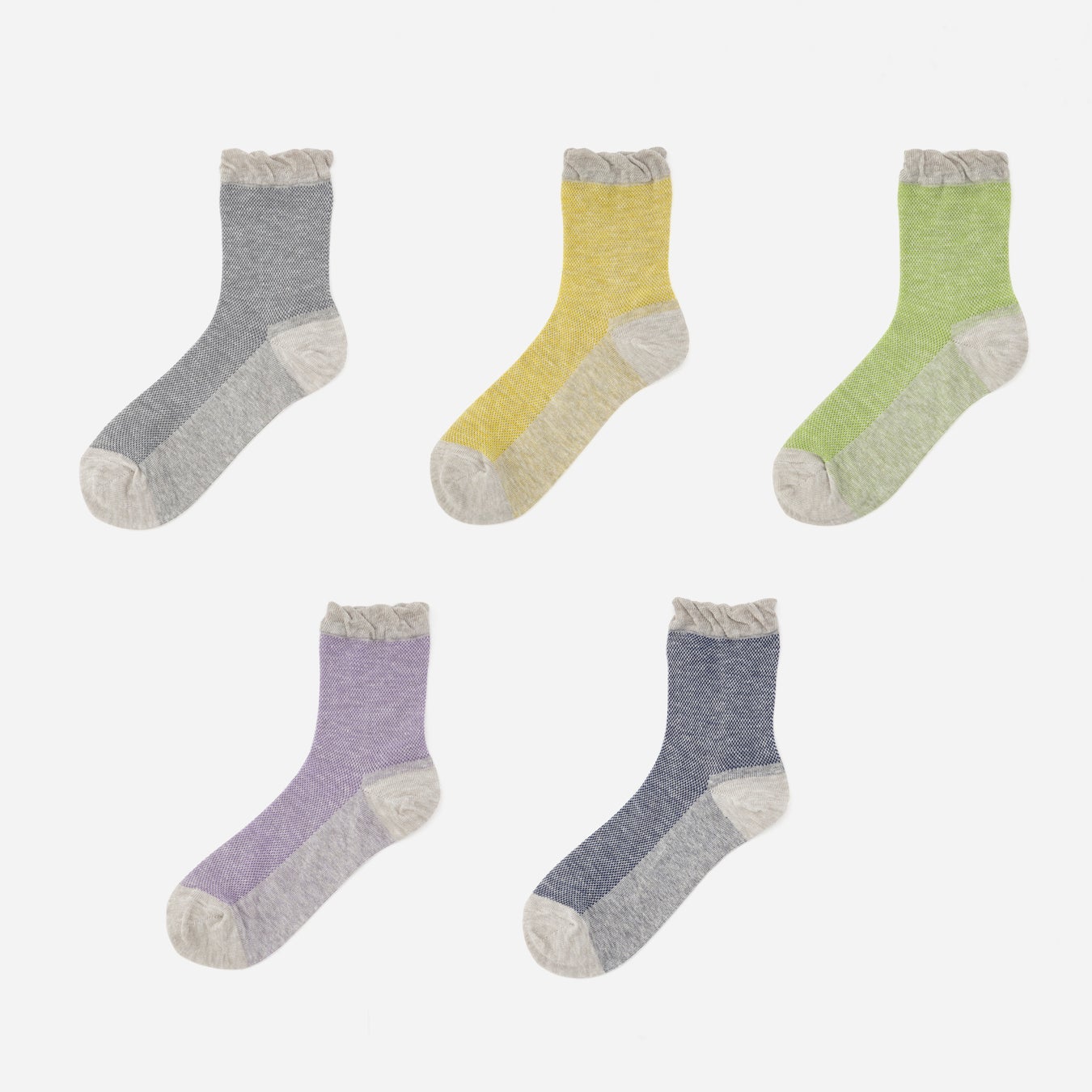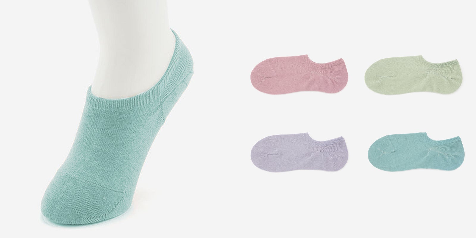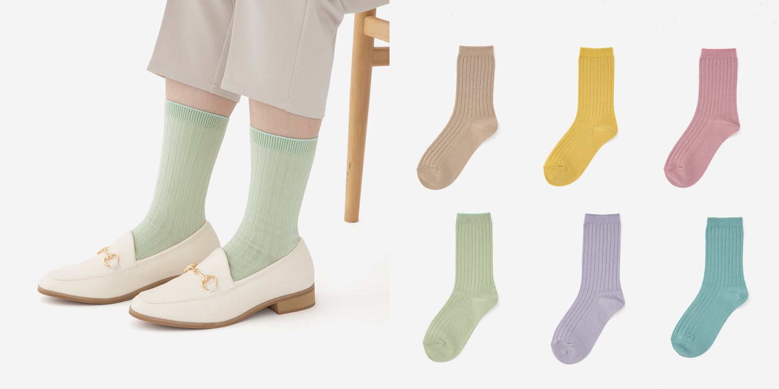 「日々の暮らしにちょうど良い靴下」として、ベーシックなものからトレンドのカラーや柄などをそろえた、日本製の靴下シリーズ。税抜298円、2足で500円(税込550円)のお手頃な価格で、毎日のファッションに合わせて靴下をお選びいただけます。春夏らしいさわやかなカラーで足元を彩ります。