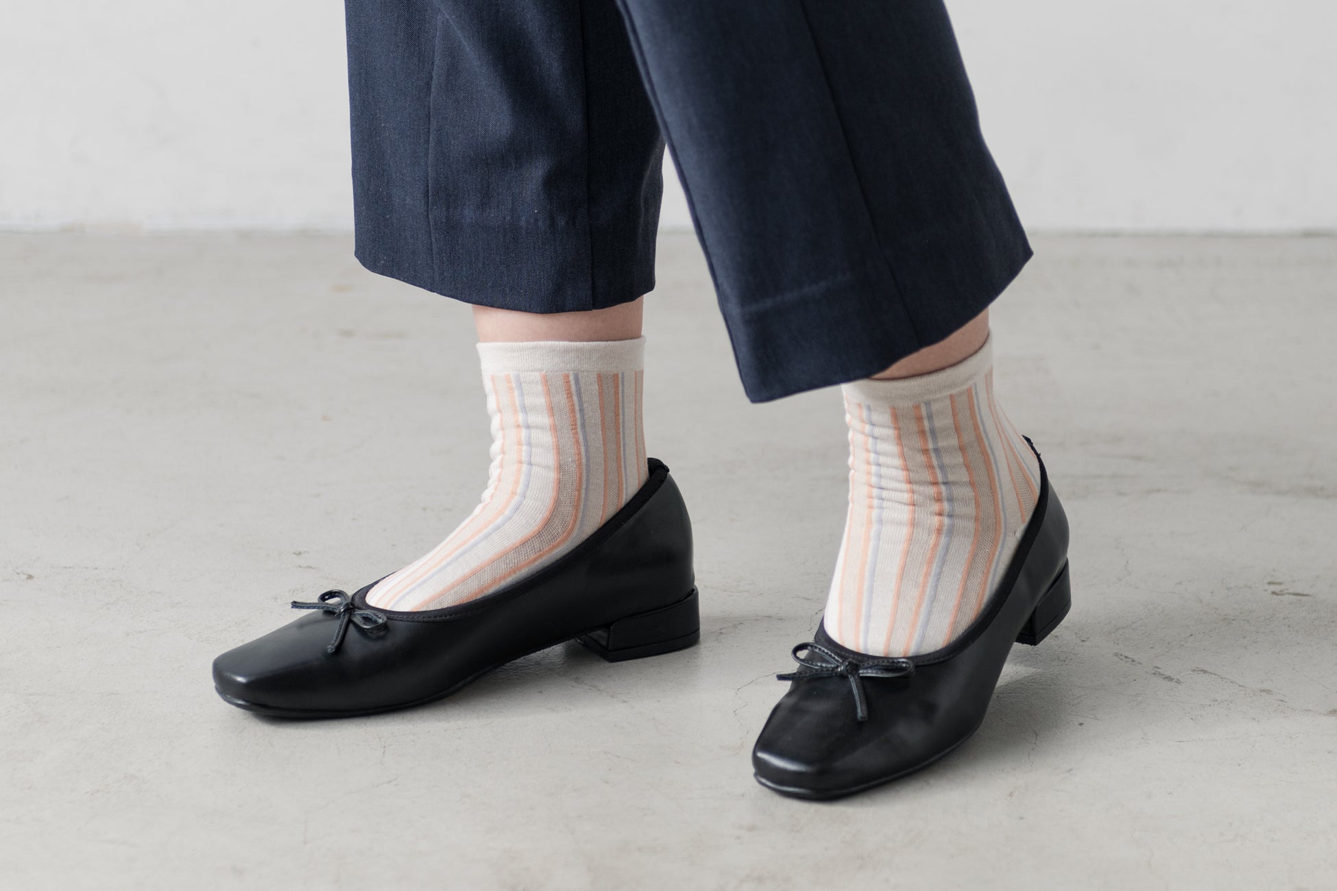 パンツスタイルに合わせやすい、レギュラー丈靴下。