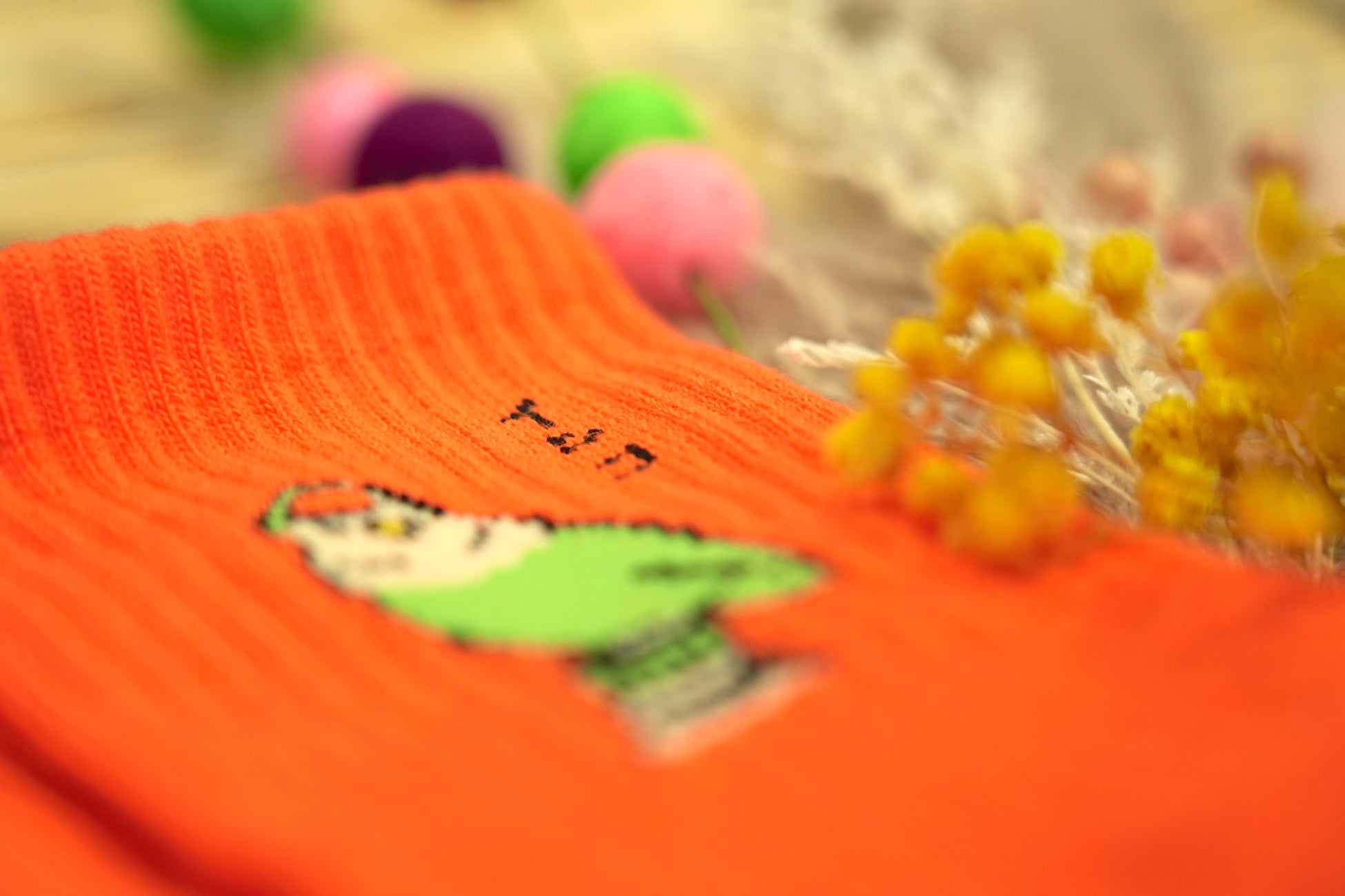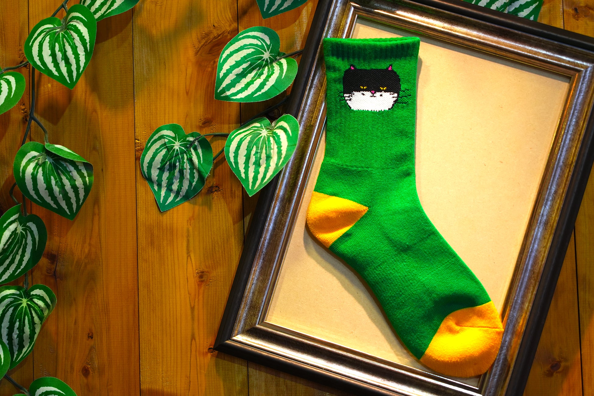 ショップ名でもある「決して老いない」をテーマにしたアイテムの1つで、私たちは年齢や時代に左右されず、永遠に若々しくありたいと考えています。このソックスを履いていると、自然とポジティブな気持ちになれるはず!