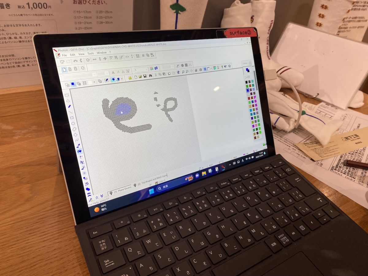「手描き」は30分間、工房のパソコンを使って、タッチペンなどでデザインしていきます。こちらはデザインできる場所や全6色(黒、緑、茶、青、黄、エンジ)のなかから使用できる色などに制限がないため、自由にデザインできます。今回の体験では「手描き」を選びました!