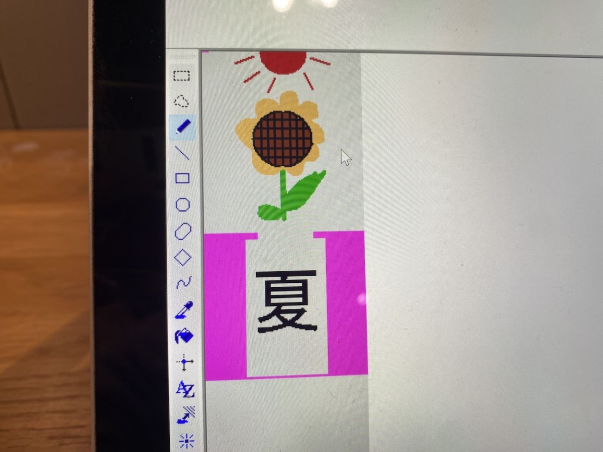 今回は30分間でヒマワリをイメージしてデザインしました。色の塗りつぶしや図形、直線を簡単に描ける機能などもあるので、ヒマワリの種など細かな部分も簡単に仕上げられました。