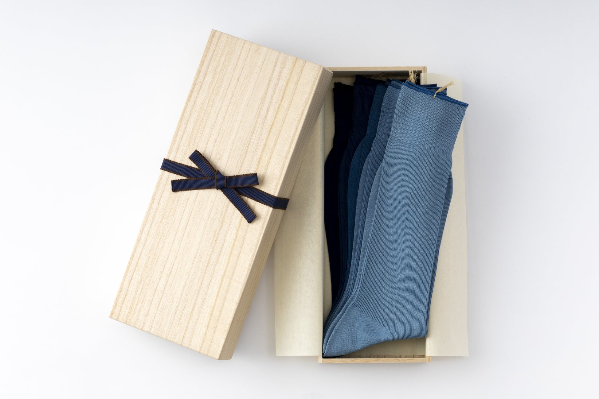 内容:藍染靴下 5足(5色展開、桐箱入り)