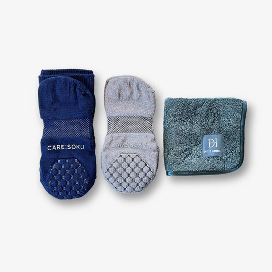 ケアソク〈ととのえる ベーシック〉とDRESS HERSELFの〈ハンドタオル シルク〉の2点セットです。